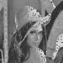 Option PURPOSE: To compute various localized (neighborhood) statistical filters on an image. DESCRIPTION: STATSFILT is a collection of localized (neighborhood) statistical filters most of which are used for mostly for noise reduction in an image. Note that most noise reduction filters trade noise reduction for some degree of blurring. Arguments: -h or help ..... displays help information. -s ..... statistic ..... statistic is a numerical id for the type of statistic to be calculated. A value of 1 replaces each input pixel with the simple average (or arithmetic mean) of all the pixels in the 3x3 neighborhood about that input pixel. A value of 2 replaces the input pixel with the minimum value found in the neighborhood. A value of 3 replaces the input pixel with the maximum value found in the neighborhood. A value of 4 replace the input pixel with average of the minimum and maximum values in the neighborhood. A value of 5 replaces the input pixel with simple average of all the pixels in the neighborhood, except the minimum and maximum values. Thus it is throwing out the two extreme outliers. A value of 6 replaces the input pixel with the standard deviation of all the pixels in the neighborhood. This is more of an edge operator that a noise reduction operator. A value of 7 replaces the input pixel with geometric mean of all the pixels in the neighborhood. The geometric mean is computed by taking the ln of each neigborhood pixel value, averaging these values and then taking the exp of the result. The geometric mean is used especially for noise reduction when dealing with one-sided noise that is all bright spikes (but not well at all dark spikes). A value of 8 replaces the input pixel with the harmonic mean of all the pixels in the neighborhood. The harmonic mean is computed by taking the inverse of each pixel value, averaging these results and then taking the inverse of the result. The harmonic mean is used especially for noise reduction when dealing with one-sided noise that is all bright spikes (but not well at all dark spikes). A value of 9 replaces the input pixel with the Lp mean of all the pixels in the neighborhood. The Lp mean is computed by raising each pixel value in the neighborhood to some power, averaging these results and then raising the result to the equivalent inverse power (i.e. the negative value of the power). A choice of p=0 is not allowed. Typically p is a low valued integer, i.e. 2 or -2. Note that p=1 is equivalent to the simple average (arithmetic mean) and p=-1 is equivalent to the harmonic mean. The Lp mean is used especially for noise reduction when dealing with one-sided noise that is either all bright spikes or all dark spikes. For all bright spikes, use negative p values and for all dark spikes, use positive p values. A value of 10 replaces the input pixel with the contraharmonic mean of all the pixels in the neighborhood. The contraharmonic mean is computed by taking the average of all the pixels in the neighborhood raised to the power p+1 and dividing that by the average of all the pixels in the neighborhood raised to the power p. The power p can be any integer. A choice of p=-1 is not allowed. Note that p=0 is equivalent to the simple average (arithmetic mean). The contraharmonic mean is used especially for noise reduction when dealing with one-sided noise that is either all bright spikes or all dark spikes. For all bright spikes, use negative p values and for all dark spikes, use positive p values. A value of 11 replaces each pixel in the input image with a linear distance weighted average of all pixels in the neighborhood, except the original center pixel. Weighting is measured as one minus the absolute difference between the graylevel of each neighbor and the center pixel. Thus pixels with smaller differences (i.e. values closer to that of the the center pixel) are weighted higher. A value of 12 replaces each pixel in the input image with an inverse distance weighted average of all pixels in the neighborhood, except the original center pixel. Weighting is measured as inverse of the absolute difference between the graylevel of each neighbor and the center pixel. Thus pixels with smaller differences (i.e. values closer to that of the the center pixel) are weighted higher. A value of 13 replaces each pixel in the input image with either the minimum or maximum value of all pixels in the neighborhood, whichever is closest in value to the given (center) pixel. This produces a sharpening effect on the image. A value of 14 replaces each pixel in the input image with the average of all the pixels in the neighborhood, but the center pixel. All of these statistical filters are computed within a 3x3 neighborhood only. As it is, some of the latter statistics take a very long time to compute as this script is based up the use of fx. -p ..... power ..... exponent value to use to raise the pixel value to the given power. The values may be positive or negative integers. The default is 2 WARNING: Due to the use of -fx, some of these filters are slow. On a Macintosh PowerPC G4, 1.42GHz with 512 Mbytes RAM and an image size of 128x128 pixels, it takes only a few seconds to run filters 1-10, 13 and 14, but about 20 seconds for filters 11 and 12. CAVEAT: No guarantee that this script will work on all platforms, nor that trapping of inconsistent parameters is complete and foolproof. Use At Your Own Risk. |
