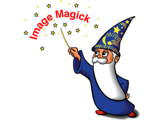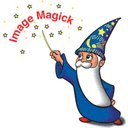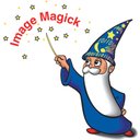 Resize logo image to match size of cyclops image convert logo.jpg -resize `identify -ping -format "%wx%h\!" cyclops.jpg` logo_resize_cyclops.jpg or convert cyclops.jpg logo.jpg -fx "v.p{i*(v.w/u.w),j*(v.h/u.h)}" logo_resize_cyclops.jpg